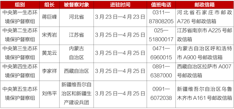 第二輪第六批中央生態(tài)環(huán)境保護督察進駐一覽表