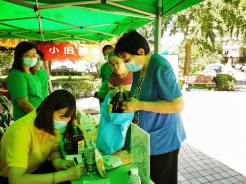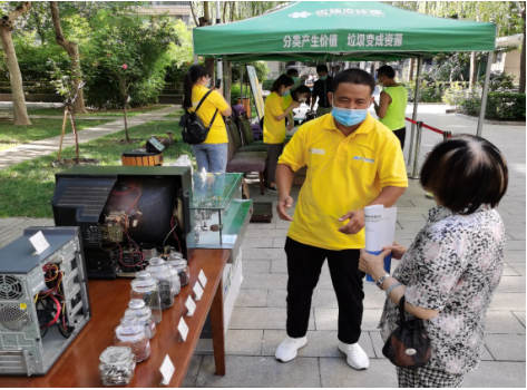 在北再生集團(tuán)的攤點,居民用廢舊電器即可換取兌換券,再憑券換取米面油等生活用品。工作人員還提供免費回收大件垃圾服務(wù)、幫助社區(qū)清理“僵尸自行車”,贏得了居民點贊~