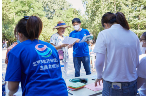 活動期間,來自北京節(jié)能環(huán)保促進(jìn)會的志愿者們給居民發(fā)放了調(diào)查問卷,了解居民處理小舊家電的方式和意愿等。